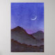 An ACEO watercolor painting of Orion the Hunter and a crescent moon over the Appalachian Mountains.