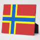 The Orkney flag has a red background with a blue and yellow Nordic cross. It was adopted in 2007.