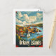 A captivating vintage portrayal of the Orkney Islands, an archipelago off the northeastern coast of Scotland, known for its rugged landscapes, ancient history, and maritime heritage. The design features the islands' dramatic cliffs, serene beaches, and historic sites such as the Ring of Brodgar and Skara Brae, all rendered in a nostalgic style. This artwork evokes the timeless beauty and cultural richness of the Orkney Islands, inviting viewers to explore their unique charm and storied past.