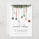 Watercolor ornament exchange Christmas party invitation featuring greenery and ornaments. Personalize your Christmas invitations with your party details.