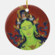 This special ceramic ornament has the image and mantra of Green Tara on one side and a close up of her face on the other side. It makes a wonderful appearance in your shrine room!
