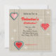 Retro inspired Valentine's day party invitation with hanging heart ornaments on a barkcloth background