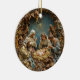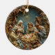 Celebrate the true meaning of Christmas with this intricately detailed nativity scene ornament. The Holy Family is surrounded by angels, shepherds, and a serene landscape, with Baby Jesus in a beautifully crafted manger at the centre. Soft golden and neutral tones create a warm, reverent atmosphere. Customise this ornament for your family or as a heartfelt gift. The gold thread allows easy hanging for a treasured Christmas display.
