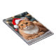 Cute Ginger British shorthair cat wearing a Santa hat.