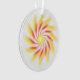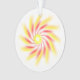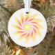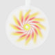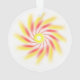 Yellow, red, and orange pinwheel rotates on either side of the ornament.