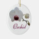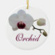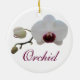 This gorgeous bloom is a Phalaenopsis Orchid with a red "lip". Orchids are truly fascinating plants; one of the world's favourite flavours and fragrances comes from an orchid: vanilla. The vanilla bean is actually an orchid seed pod and the scrapings from the inside of the bean, often used in ice creams and by chefs, are actually millions and millions of orchid seeds. There's also a lot of stories, myths and legends pertaining to orchids. The name "orchid" comes from the Greek word "orchis" which means (of all things) "testicle". The legend of Orchis, who was the son of a nymph and satyr, ended badly (as they always seem to). His death was particularly gruesome, as he was torn apart. His father begged the gods to return his son to him; they declined. However, he was offered some measure of consolation as the remains became orchids. This stunning bloom is offered here on this beautiful ornament. The design is mirrored on the reverse of the ornament. You are welcome to replace the mirrored design and/or text with your own message or sentiment.