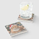 The coasters are gorgeous, a quality feel and heavy weight. They look like a precious archeological find. A rustic stone juxtaposed with a modern floral black and white print. I like the way the print goes slightly imperfect on the cut stone edges giving them a kind-of natural beauty.