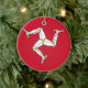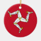 This ornament prominently displays the flag of the Isle of Man, showcasing its distinctive triskelion symbol on a bold red background. The triskelion, with its three armoured legs joined at the thigh, symbolises resilience and determination, reflecting the island's motto "Quocunque Jeceris Stabit," which translates to "Whichever way you throw it, it will stand."