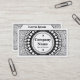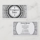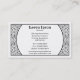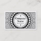 A business card template with an original ornamented design. A circular panel on the front for company name and business type decorated with circular text symbols surrounded by a decorative design. The reverse of the card retains the outer part of the design but with a larger area in the middle for name, title, and other contact details. Suitable for a variety of different businesses, could also be adapted for use as a gift card voucher or token. Having a style somewhat reminiscent of banknotes or toy money.