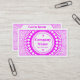 A business card template with an original ornamented design. A circular panel on the front for company name and business type decorated with circular text symbols surrounded by a decorative design. The reverse of the card retains the outer part of the design but with a larger area in the middle for name, title, and other contact details. Suitable for a variety of different businesses, could also be adapted for use as a gift card voucher or token. Having a style somewhat reminiscent of banknotes or toy money.