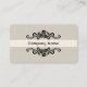A stylish attractive business/profile card template decorated on the front with ornamental floral elements and a white centre band. Company Name on the front with name and contact details on the back placed within a wider white banded area. Customisable and suitable for may types of business.