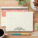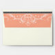 Ornamental border coral, white wedding custom envelope, featuring a beautiful coral and white ornamental border with scrollwork on ivory background.