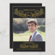 A sophisticated graduation announcement with a black background and gold floral ornamentation. Share your grad's success with our personalised announcements.<a href='http://www.freepik.com/free-photo/close-up-of-smiling-worker-in-a-grey-suit-and-white-shirt_903594.htm'>Designed by Freepik</a><br/><br/>The card is easy to customise with your wording, font, font colour, paper shape options and choice of six paper types.<br/><br/>Not exactly what you're looking for? All our products can be custom designed to meet your needs at no extra charge.<br/><br/>Simply contact us at askcottonlamb@gmail.com<br/><br/>Coordinating products available: Just ask us!