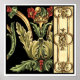 An ornamental painting with an attractive floral design enclosed by black borders. The green and red colours leap off the print thanks to the black background. How wonderful would this look on your wall? Purchase it and find out!