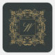 Ornamental Frame Monogram on Dark Leather Square Sticker