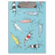 This colourful group of fancy ornamental shrimp is perfect for freshwater aquarium keepers who keep or breed shrimp in their fish tanks. The clipboard features hand-drawn blue bolts, cherry shrimp, yellow shrimp, red tiger, bumblebee and ghost shrimp.