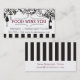 Great for wine tastings, vineyard tours or food and wine biz, wine glass, wine bottle and corkscrew charms hanging from an ornamental mess with grapes, a dotted name plate and bold black stripes on business cards, 'from the kitchen of' stickers, labels, and gift cards, and personal recipe binders, or wine journal notebooks and letterhead.