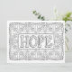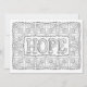 Hope - A dainty floral pattern makes up a frame for the word "Hope" in large outline letters with a feminine typeface. Colour this card and add your message to the back. Click customise for more paper and size options. From OrnaMENTALs™ Feel Good Words Colouring Book. OrnaMENTALs Colouring Fun for All Ages, Design #0117. Original artwork by Sue Chastain, suziqcreations.com.