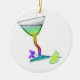 BUTTERFLY MARTINI "THE GLASS ISN'T HALF EMPTY OR HALF FULL - IT'S SIMPLY IN NEED OF A REFILL!" A rainbow coloured martini glass etched with butterflies, filled half full, garnished with a lime wedge on a butterfly pick.