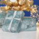 Christmas tree ornaments green, teal, white silver gray craft decoupage wrapping paper for her. Stylish, elegant, beautiful design. Trendy pastel colors. Holiday style vintage antique inspired gift wrap. Image copyright Marg Seregelyi Photography.
