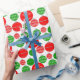 This wrapping paper features red and green Christmas ornaments on a white background. Click Personalise this Template to easily personalise this wrapping paper with your name or custom holiday greeting.