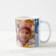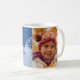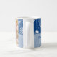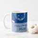 Merry Christmas Mum custom photo mug in stylish blue and white snowflake and decorations pattern with customisable text and photo, perfect as a holiday gift.