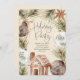 A gathering of rustic ornaments and firs headlines this boho style holiday party invite.