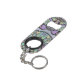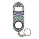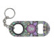 Monogrammed bottle opener with art deco ornamental pattern in pastel purple and green.