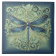Ornate Art Nouveau Dragonfly Pat#12 Blue ID1222 Ceramic Tile