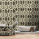 Ornate Black and Cream Abstract Pattern Wallpaper