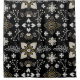 Ornate black and white floral pattern with gold accents. Central symmetrical flower surrounded by leaf motifs and intricate branches. Elegant, decorative design.