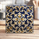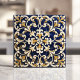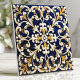 This beautifully ornate tile showcases intricate scrollwork patterns in rich navy blue, accented by golden and white details for a timeless, luxurious aesthetic. The symmetrical design is perfect for creating an elegant backsplash, statement wall, or decorative focal point in your home. With its classic appeal and detailed craftsmanship, this tile is ideal for both traditional and contemporary spaces. Its vibrant colours and intricate detailing make it a versatile choice for enhancing any decor.