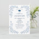 Ornate Blue Floral Grace 4 Photo Graduation Party Invitation