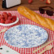 Ornate Blue French Toile Roses Floral Paper Plates