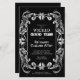 Halloween party invitations feature an ornate border on black and your party details in chic white lettering. These affordable invites are printed on 110 lb paper. Fun for Halloween costume party invitations, Halloween birthday party invitations, just change the wording to fit your occasion. **WHITE ENVELOPES ARE OPTIONAL ON ORDER PAGE. Be sure to double-check your order before adding it to your cart as what you see on the screen is what will be printed. The Live Design Service can help you with your design layout if needed. MATCHING items in our store.