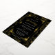 Elevate your stationery suite with this Regency-inspired wedding invitation. This design features a striking black background contrasted by an ornate gold foil floral border and a classic Victorian monogram crest. It is the perfect choice for couples hosting a formal black-tie affair or a vintage-themed celebration in a grand chapel.