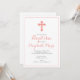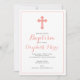 Ornate Cross Pink Girl Baptism Christening Invitation