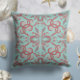 Light and refreshing, the Ornate Elegance in Mint Aqua pillow features a soft minty green backdrop with ornate pink flourishes. This design brightens any space, from chic modern interiors to cosy bohemian corners.
