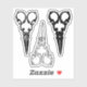 Three ornate fancy old fashioned style scissors on one sheet. Two are black graphics and one is a black outline.