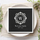 Ornate Floral Monogram Wedding Elegant Black White Napkins features your personalised monogrammed initials in elegant script typography surrounded by an ornamental floral frame and custom text overlay. Add a touch of style and sophistication to your wedding celebration or event with these high quality napkins. Perfect for weddings, engagement parties, bridal showers and anniversaries. Celebrate your special day with customised napkins with your initials for a stylish personalised touch. Created by Evco Studio www.zazzle.com/store/evcostudio