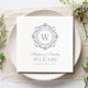 Ornate Floral Monogram Wedding Elegant Silver Napkins features your personalised monogrammed initials in elegant script typography surrounded by an ornamental floral frame and custom text overlay. Add a touch of style and sophistication to your wedding celebration or event with these high quality napkins. Perfect for weddings, engagement parties, bridal showers and anniversaries. Celebrate your special day with customised napkins with your initials for a stylish personalised touch. Created by Evco Studio www.zazzle.com/store/evcostudio