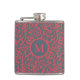 Ornate Floral Pattern in Pink and Grey Monogram Hip Flask