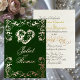 Ornate Frame & Heart - Emerald Foil Invitation featuring an emerald green background with an ornate frame, heart and bride & grooms first names in foil on the front. The details, on a cream background are on the back. Designed to coordinate with the "Ornate Frame & Hearts" Wedding Collection. To change details, click «Personalise». To move the text or change the text size, font, or colour click «Click to customise further»