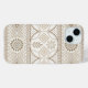 An ornate, symmetrical seamless pattern phone case featuring interconnected circles, diamonds, and floral motifs in warm beige and brown tones on a light background. The design combines structured geometric borders with stylised leaves and flowers, blending natural inspiration with architectural precision. With influences from Moroccan, Victorian, and Mediterranean styles, this pattern evokes timeless elegance and detailed craftsmanship. Ideal for home décor lovers, tile enthusiasts, and those drawn to heritage-inspired designs. Perfect for artisan gifts, cultural-themed projects, or classic decorative accents.