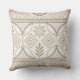 An ornate, symmetrical seamless pattern throw pillow featuring interconnected circles, diamonds, and floral motifs in warm beige and brown tones on a light background. The design combines structured geometric borders with stylised leaves and flowers, blending natural inspiration with architectural precision. With influences from Moroccan, Victorian, and Mediterranean styles, this pattern evokes timeless elegance and detailed craftsmanship. Ideal for home décor lovers, tile enthusiasts, and those drawn to heritage-inspired designs. Perfect for artisan gifts, cultural-themed projects, or classic decorative accents.