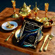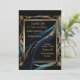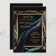 This wedding card design showcases an ornate, golden frame with intricate floral and botanical details, creating a regal and luxurious feel. The deep black background is contrasted by flowing teal and dark blue ribbons adorned with delicate gold patterns, adding a touch of elegance and sophistication. The art style blends classical and modern elements, with a focus on opulent detailing and rich colour contrasts, making it a perfect choice for a formal and grand wedding celebration. Personalise the text regarding the names and details of the wedding. You can download the card to your mobile device or computer. I designed the card with the help of generative ai.