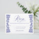 Ornate Greek Floral Pattern Blue Elegant Script RSVP Card