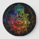 Ornate hamsa: hand-drawn neon pattern. large clock