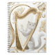 A beautifully balanced notebook cover featuring a serene cat playing a harp, framed in elegant golden detail. Designed for those who appreciate calm, artistic stationery.