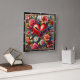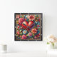 This exquisite square wall clock features a sophisticated digital illustration of a large, deep red heart centered within a lush botanical garden. The heart is decorated with intricate golden filigree and swirling embossed patterns. It is surrounded by a dense arrangement of realistic blossoms, including pink peonies, white daisies, and vibrant lilies, accented by swirling red ribbons and smaller floating hearts. The composition blends classical romanticism with modern digital art, creating a rich and textured visual experience. The artwork is set within a modern black wood-grain frame with bold white numeric markers for easy timekeeping. This functional home decor piece is a perfect gift for Valentine Day, anniversaries, or weddings, adding a touch of elegant floral beauty to any bedroom, living room, or office.